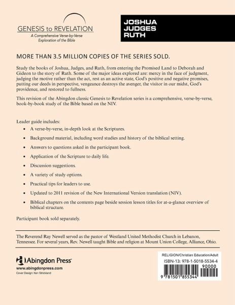 Study the books of Joshua, Judges, and Ruth, beginning with Joshua's story, then moving through Judges, and ending with the story of Ruth. Some of the major ideas explored are: sanctity and wonders, mercy in the face of judgment, judging the motive rather than the act, rest as an active state, God's positive and negative promises, putting our deeds in perspective, vengeance destroys the avenger, the visitor in our midst, and God's providence. Leader Guide includes: A verse-by-verse, in-depth look at the Scriptures. Background material, including word studies and history of the biblical setting. Answers to questions asked in the Participant Book. Application of the Scripture to daily life situations. Discussion suggestions. A variety of study options. Practical tips for leaders to use. More than 3.5 million copies of the series have been sold. This revision of the Abingdon classic Genesis to Revelation Series is a comprehensive, verse-by-verse, book-by-book study of the Bible based on the NIV. These studies help readers strengthen their understanding and appreciation of the Bible by enabling them to engage the Scripture on three levels: What does the Bible say? Questions to consider while reading the passage for each session. What does the passage mean? Unpacks key verses in the selected passage. How does the Scripture relate to my life? Provides three major ideas that have meaning for our lives today. The meaning of the selected passages are made clear by considering such aspects as ancient customs, locations of places, and the meanings of words. The simple format makes the study easy to use. Updates will include: New cover designs. New interior designs. Leader Guide per matching Participant Book (rather than multiple volumes in one book). Updated to 2011 revision of the New International Version Translation (NIV). Updated references to New Interpreters Dictionary of the Bible. Include biblical chapters on the contents page beside session lesson titles for at-a-glance overview of biblical structure. Include larger divisions within the contents page to reflect macro-structure of each biblical book. Ex: Genesis 1-11; Genesis 12-50; Exodus 1-15; Exodus 16-40; Isaiah 1-39; Isaiah 40-66. The simple format makes the study easy to use. Each volume is 13 sessions.