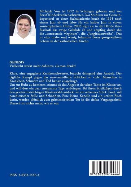 Klara, eine engagierte Krankenschwester, braucht dringend eine Auszeit. Der tägliche Kampf gegen das unvermeidliche Schicksal so vieler Menschen in Krankheit, Schmerz und Tod hat sie ausgelaugt. Um zur Ruhe zu kommen, nimmt sie das Angebot der alten Tante im Kloster an, und will dort ein paar entspannte Tage verbringen. Bei ihren Streifzügen durch den geschichtsträchtigen Klosterwald entdeckt sie ein seltsames Stück Land, voll paradiesischer Stille und Schönheit. Eine kleine Kapelle und ein uraltes Buch darin, werden plötzlich zum geheimnisvollen Tor in die tiefste Vergangenheit. Danach ist nichts mehr, wie es war.