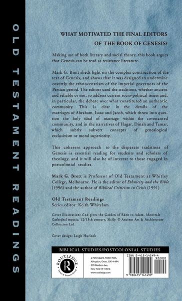 Combining insights from social and literary theory as well as traditional historical studies, Mark Brett argues that the first book of the Bible can be read as resistance literature. Placing the theological text firmly within its socio-political context, he shows that the editors of Genesis were directly engaged with contemporary issues, especially the nature of an authentic community, and that the book was designed to undermine the ethnocentism of the imperial governors of the Persian period (fifth century BCE).