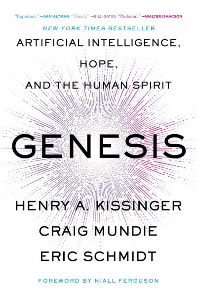 NEW YORK TIMES BESTSELLER USA TODAY BESTSELLER LOS ANGELES TIMES BESTSELLER J.P. MORGAN NEXTLIST SELECTION In his final book, the late Henry Kissinger joins forces with two leading technologists to mount “a profound exploration” (Walter Isaacson) of the epochal challenges and opportunities presented by the revolution in Artificial Intelligence: a breakthrough that dramatically empowers people in all walks of life while also raising urgent questions about the future of humanity. As it absorbs data, gains agency, and intermediates between humans and reality, AI (Artificial Intelligence) will help us to address enormous crises, from climate change to geopolitical conflicts to income inequality. It might well solve some of the greatest mysteries of our universe and elevate the human spirit to unimaginable heights. But it will also pose challenges on a scale and of an intensity that we have never seen—usurping our power of independent judgment and action, testing our relationship with the divine, and perhaps even spurring a new phase in human evolution. The last book of elder statesman Henry Kissinger, written with technologists Craig Mundie and Eric Schmidt, Genesis charts a course between blind faith and unjustified fear as it outlines an effective strategy for navigating the age of AI.