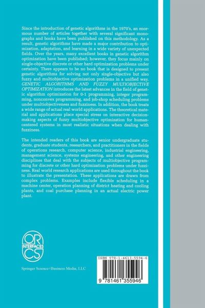 Since the introduction of genetic algorithms in the 1970s, an enormous number of articles together with several significant monographs and books have been published on this methodology. As a result, genetic algorithms have made a major contribution to optimization, adaptation, and learning in a wide variety of unexpected fields. Over the years, many excellent books in genetic algorithm optimization have been published; however, they focus mainly on single-objective discrete or other hard optimization problems under certainty. There appears to be no book that is designed to present genetic algorithms for solving not only single-objective but also fuzzy and multiobjective optimization problems in a unified way. Genetic Algorithms And Fuzzy Multiobjective Optimization introduces the latest advances in the field of genetic algorithm optimization for 0-1 programming, integer programming, nonconvex programming, and job-shop scheduling problems under multiobjectiveness and fuzziness. In addition, the book treats a wide range of actual real world applications. The theoretical material and applications place special stress on interactive decision-making aspects of fuzzy multiobjective optimization for human-centered systems in most realistic situations when dealing with fuzziness.