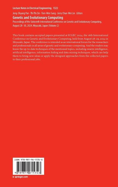 This book contains accepted papers presented at ICGEC 2024, the 16th International Conference on Genetic and Evolutionary Computing, held from August 28-29, 2024 in Miyazaki, Japan. The conference is intended as an international forum for the researchers and professionals in all areas of genetic and evolutionary computing. And the readers may know the up-to-date techniques of the mentioned topics, including digital transformation, machine learning and data analysis, meta-heuristic optimization algorithms, computer vision, and artificial intelligence of things (AIoT), which can help them to…mehr
