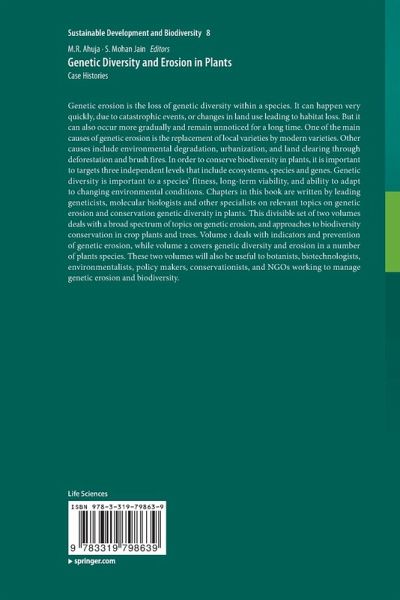Genetic erosion is the loss of genetic diversity within a species. It can happen very quickly, due to catastrophic events, or changes in land use leading to habitat loss. But it can also occur more gradually and remain unnoticed for a long time. One of the main causes of genetic erosion is the replacement of local varieties by modern varieties. Other causes include environmental degradation, urbanization, and land clearing through deforestation and brush fires. In order to conserve biodiversity in plants, it is important to targets three independent levels that include ecosystems, species and genes. Genetic diversity is important to a species' fitness, long-term viability, and ability to adapt to changing environmental conditions. Chapters in this book are written by leading geneticists, molecular biologists and other specialists on relevant topics on genetic erosion and conservation genetic diversity in plants. This divisible set of two volumes deals with a broad spectrum of topics ongenetic erosion, and approaches to biodiversity conservation in crop plants and trees. Volume 1 deals with indicators and prevention of genetic erosion, while volume 2 covers genetic diversity and erosion in a number of plants species. These two volumes will also be useful to botanists, biotechnologists, environmentalists, policy makers, conservationists, and NGOs working to manage genetic erosion and biodiversity.