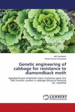 Genetic transformation studies were carried out to standardize a protocol for insect resistance gene (cry IAb) transfer in cabbage using Agrobacterium-mediated gene transfer technique. Agrobacterium tumefaciens strain containing npt-II and cryIAb genes in binary vector pBin Bt1 was used for genetic transformation. Both hypocotyls and cotyledon explants were used for transformation studies. Hypocotyl explants showed better shoot regeneration as compared to cotyledon. For shoot regeneration from cotyledon and hypocotyl explants the best medium was found to be MS + 2.0 mg/l BAP + 0.25 mg/l IAA and MS + 1.5 mg/l BAP + 0.5 mg/l NAA, respectively. MS medium supplemented with 0.1 mg/l IBA was found best for root regeneration. Kanamycin sensitivity experiment revealed that the kanamycin concentration as low as 10 mg/l is toxic to the explants. Preincubation of 72 hours and cocultivation of 48 hours was found optimum as it gave maximum transgenic shoot regeneration on selective medium. Several putative cabbage transformants were selected on kanamycin selective media. Positive and stable Bt gene transformants were selected based on polymerase chain reaction analysis.