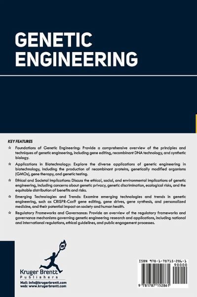 Foundations of Genetic Engineering: Provide a comprehensive overview of the principles and techniques of genetic engineering, including gene editing, recombinant DNA technology, and synthetic biology. Applications in Biotechnology: Explore the diverse applications of genetic engineering in biotechnology, including the production of recombinant proteins, genetically modified organisms (GMOs), gene therapy, and genetic testing. Ethical and Societal Implications: Discuss the ethical, social, and environmental implications of genetic engineering, including concerns about genetic privacy, genetic discrimination, ecological risks, and the equitable distribution of benefits and risks. Emerging Technologies and Trends: Examine emerging technologies and trends in genetic engineering, such as CRISPR-Cas9 gene editing, gene drives, gene synthesis, and personalized medicine, and their potential impact on society and human health. Regulatory Frameworks and Governance: Provide an overview of the regulatory frameworks and governance mechanisms governing genetic engineering research and applications, including national and international regulations, ethical guidelines, and public engagement processes.
