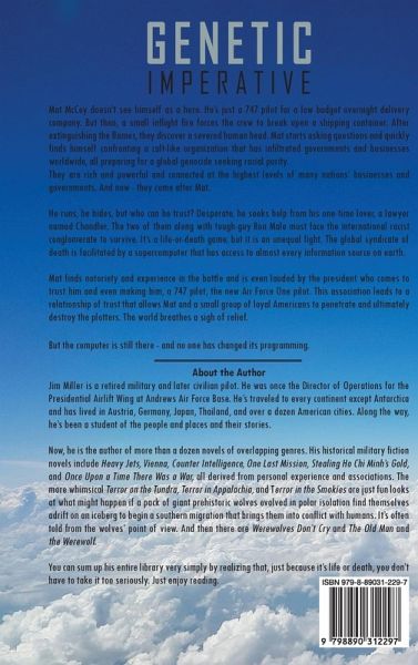 Mat McCoy doesn't see himself as a hero. He's just a 747 pilot for a low budget overnight delivery company. But then, a small inflight fire forces the crew to break open a shipping container. After extinguishing the flames, they discover a severed human head. Mat starts asking questions and quickly finds himself confronting a cult-like organization that has infiltrated governments and businesses worldwide, all preparing for a global genocide seeking racial purity. They are rich and powerful and connected at the highest levels of many nations' businesses and governments. And now - they come after Mat. He runs, he hides, but who can he trust? Desperate, he seeks help from his one-time lover, a lawyer named Chandler. The two of them along with tough-guy Ron Male must face the international racist conglomerate to survive. It's a life-or-death game, but it is an unequal fight. The global syndicate of death is facilitated by a supercomputer that has access to almost every information source on earth. Mat finds notoriety and experience in the battle and is even lauded by the president who comes to trust him and even making him, a 747 pilot, the new Air Force One pilot. This association leads to a relationship of trust that allows Mat and a small group of loyal Americans to penetrate and ultimately destroy the plotters. The world breathes a sigh of relief. But the computer is still there - and no one has changed its programming.