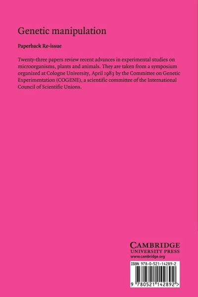 Twenty-three papers review recent advances in experimental studies on microorganisms, plants and animals. They are taken from a symposium organized at Cologne University, in April 1983 by the Committee on Genetic Experimentation (COGENE), a scientific committee of the International Council of Scientific Unions.