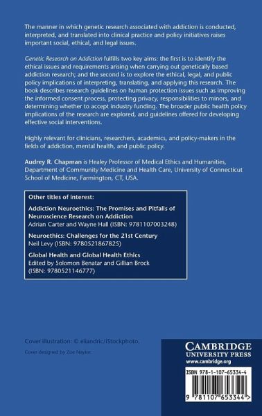 The manner in which genetic research associated with addiction is conducted, interpreted and translated into clinical practice and policy initiatives raises important social, ethical and legal issues. Genetic Research on Addiction fulfils two key aims; the first is to identify the ethical issues and requirements arising when carrying out genetically-based addiction research, and the second is to explore the ethical, legal and public policy implications of interpreting, translating and applying this research. The book describes research guidelines on human protection issues such as improving the informed consent process, protecting privacy, responsibilities to minors and determining whether to accept industry funding. The broader public health policy implications of the research are explored and guidelines offered for developing effective social interventions. Highly relevant for clinicians, researchers, academics and policy-makers in the fields of addiction, mental health and public policy.