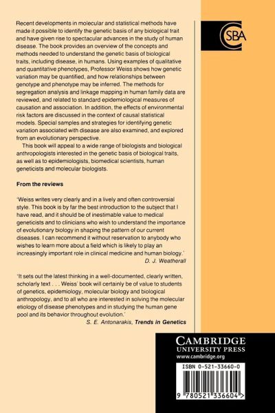 Recent developments in molecular and computational methods have made it possible to identify the genetic basis of any biological trait, and have led to spectacular advances in the study of human disease. This book provides an overview of the concepts and methods needed to understand the genetic basis of biological traits, including disease, in humans. Using examples of qualitative and quantitative phenotypes, Professor Weiss shows how genetic variation may be quantified, and how relationships between genotype and phenotype may be inferred. This book will appeal to many biologists and biological anthropologists interested in the genetic basis of biological traits, as well as to epidemiologists, biomedical scientists, human geneticists and molecular biologists.