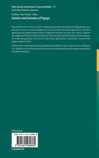 Papaya (Carica papaya L.): Origin, Domestication, and Production.- Biology of the Papaya Plant.- Phenotypic and Genetic Diversity of Papaya.- Vasconcellea for Papaya Improvement.- The Phylogeny of the Caricaceae.- History and Future of the Solo Papaya.- Hawaii's Transgenic Papaya Story 1978-2012: A Personal Account.- Molecular Genetic Mapping of Papaya.- Molecular Cytogenetics of Papaya.- Physical Map of Papaya Genome.- Sequencing and Assembly of the Transgenic Papaya Genome.- Syntenic Sequence Conservation Between and Within Papaya Genes.- Papaya Repeat Database.- Genomics of Papaya Fruit Development and Ripening.- Genomics of Papaya Disease Resistance.- Genomics of Papaya Sex Chromosomes.- Physical Mapping of Papaya Sex Chromosomes.- Cloning Major Genes Controlling Fruit Flesh Color in Papaya.- Molecular Markers in Papayas.- Papaya Nutritional Analysis.- Papaya as a Medicinal Plant.- Allele Discovery Platform (ADP) in Papaya (Carica papaya L.).