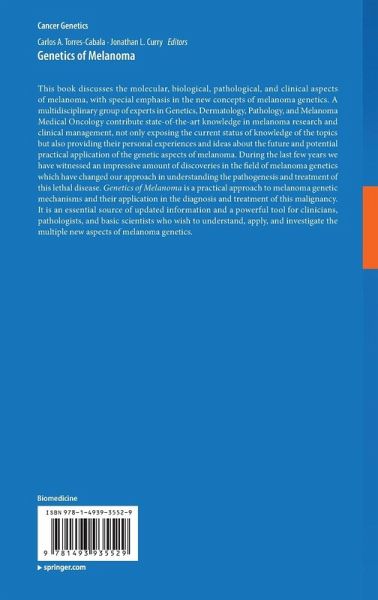 This book discusses the molecular, biological, pathological, and clinical aspects of melanoma, with special emphasis in the new concepts of melanoma genetics. A multidisciplinary group of experts in Genetics, Dermatology, Pathology, and Melanoma Medical Oncology contribute state-of-the-art knowledge in melanoma research and clinical management, not only exposing the current status of knowledge of the topics but also providing their personal experiences and ideas about the future and potential practical application of the genetic aspects of melanoma. During the last few years we have witnessed an impressive amount of discoveries in the field of melanoma genetics which have changed our approach in understanding the pathogenesis and treatment of this lethal disease. Genetics of Melanoma is a practical approach to melanoma genetic mechanisms and their application in the diagnosis and treatment of this malignancy. It is an essential source of updated information and a powerful tool for clinicians, pathologists, and basic scientists who wish to understand, apply, and investigate the multiple new aspects of melanoma genetics.