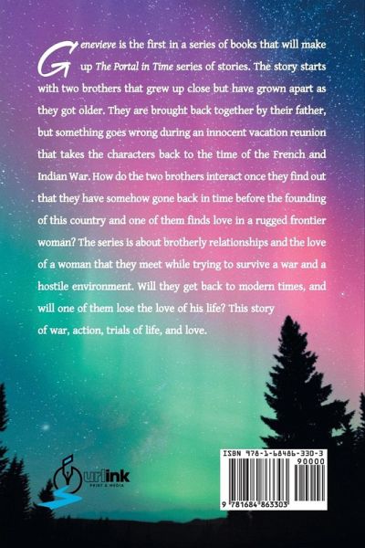Genevieve is the first in a series of books that will make up The Portal in Time series of stories. The story starts with two brothers that grew up close but have grown apart as they got older. They are brought back together by their father, but something goes wrong during an innocent vacation reunion that takes the characters back to the time of the French and Indian War. How do the two brothers interact once they find out that they have somehow gone back in time before the founding of this country and one of them finds love in a rugged frontier woman? The series is about brotherly relationships and the love of a woman that they meet while trying to survive a war and a hostile environment. Will they get back to modern times, and will one of them lose the love of his life? This story of war, action, trials of life, and love.