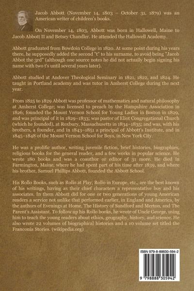 This simply narrated history of Genghis Khan traces the life of the great conqueror, from being the son of a minor chieftain in Mongolia to becoming the ruler of arguably the largest empire in history. Preface The word khan is not a name, but a title. It means chieftain or king. It is a word used in various forms by the different tribes and nations that from time immemorial have inhabited Central Asia, and has been applied to a great number of potentates and rulers that have from time to time arisen among them. Genghis Khan was the greatest of these princes. He was, in fact, one of the most renowned conquerors whose exploits history records. As in all other cases occurring in the series of histories to which this work belongs, where the events narrated took place at such a period or in such a part of the world that positively reliable and authentic information in respect to them can now no longer be obtained, the author is not responsible for the actual truth of the narrative which he offers, but only for the honesty and fidelity with which he has compiled it from the best sources of information now within reach. About the author: Jacob Abbott (November 14, 1803 - October 31, 1879) was an American writer of children's books. On November 14, 1803, Abbott was born in Hallowell, Maine to Jacob Abbott II and Betsey Chandler. He attended the Hallowell Academy. Abbott graduated from Bowdoin College in 1820. At some point during his years there, he supposedly added the second "t" to his surname, to avoid being "Jacob Abbot the 3rd" (although one source notes he did not actually begin signing his name with two t's until several years later). Abbott studied at Andover Theological Seminary in 1821, 1822, and 1824. He taught in Portland academy and was tutor in Amherst College during the next year. From 1825 to 1829 Abbott was professor of mathematics and natural philosophy at Amherst College; was licensed to preach by the Hampshire Association in 1826; founded the Mount Vernon School for Young Ladies in Boston in 1829, and was principal of it in 1829-1833; was pastor of Eliot Congregational Church (which he founded), at Roxbury, Massachusetts in 1834-1835; and was, with his brothers, a founder, and in 1843-1851 a principal of Abbott's Institute, and in 1845-1848 of the Mount Vernon School for Boys, in New York City. He was a prolific author, writing juvenile fiction, brief histories, biographies, religious books for the general reader, and a few works in popular science. He wrote 180 books and was a coauthor or editor of 31 more. He died in Farmington, Maine, where he had spent part of his time after 1839, and where his brother, Samuel Phillips Abbott, founded the Abbott School. His Rollo Books, such as Rollo at Play, Rollo in Europe, etc., are the best known of his writings, having as their chief characters a representative boy and his associates. In them Abbott did for one or two generations of young American readers a service not unlike that performed earlier, in England and America, by the authors of Evenings at Home, The History of Sandford and Merton, and The Parent's Assistant. To follow up his Rollo books, he wrote of Uncle George, using him to teach the young readers about ethics, geography, history, and science. He also wrote 22 volumes of biographical histories and a 10 volume set titled the Franconia Stories. (wikipedia.org)