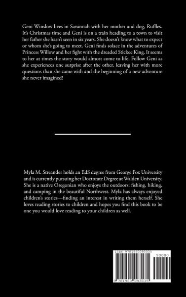 Geni Winslow lives in Savannah with her mother and dog, Ruffles. It's Christmas time and Geni is on a train heading to a town to visit her father she hasn't seen in six years. She doesn't know what to expect or who she's going to meet. Geni finds solace in the adventures of Princess Willow and her fight with the dreaded Stickee King. It seems to her at times the story would almost come to life. Follow Geni as she experiences one surprise after the other, leaving her with more questions than she came with and the beginning of a new adventure she never imagined!