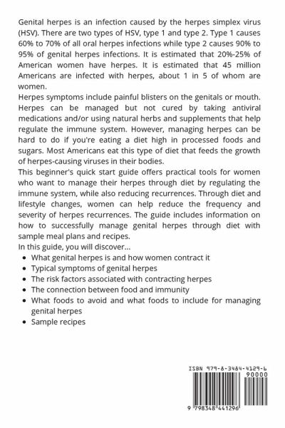 In this guide about Genital Herpes, you will read about: How women get it Its symptoms Risk factors Foods to avoid and consume Sample recipes