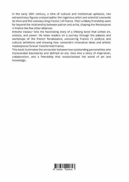 Im frühen 16. Jahrhundert, einer Epoche des kulturellen und intellektuellen Umbruchs, trafen zwei außergewöhnliche Persönlichkeiten aufeinander: der geniale Künstler und Wissenschaftler Leonardo da Vinci und der visionäre König Franz I. von Frankreich. Ihre ungewöhnliche Freundschaft ging weit über die Beziehung zwischen Patron und Künstler hinaus und prägte die Renaissance in Frankreich wie kaum ein anderes Bündnis.Antoine Vasseur erzählt die faszinierende Geschichte einer lebenslangen Verbindung, die Kunst, Wissenschaft und Macht vereinte. Er nimmt die Leser mit auf eine Reise durch die Paläste und Werkstätten der französischen Renaissance, enthüllt die politischen und kulturellen Ambitionen von Franz I. und zeigt, wie Leonardos innovative Ideen und künstlerische Meisterwerke Frankreich für immer veränderten.Dieses Buch beleuchtet die Begegnung zweier herausragender Persönlichkeiten, die Grenzen überschritten und eine Epoche definierten. Tauchen Sie ein in eine Geschichte von Inspiration, Zusammenarbeit und einer Freundschaft, die die Welt der Kunst und des Wissens revolutionierte.