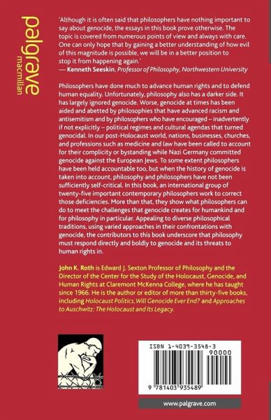 'Although it is often said that philosophers have nothing important to say about genocide, the essays in this book prove otherwise. The topic is covered from numerous points of view and always with care. One can only hope that by gaining a better understanding of how evil of this magnitude is possible, we will be in a better position to stop it from happening again.' - Kenneth Seeskin,