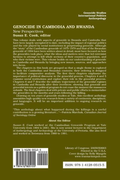 This volume deals with aspects of genocide in Rwandaand Cambodia that have been largely unexplored to date, including the impact of regional politics and the role played by social institutions in perpetrating genocide. Although the "story" of the Cambodian genocide of 1975-1979 and that of the Rwandan genocide of 1994 have been written about in detail, most have focused on how the genocides took place, what the ideas and motives were that led extremist factions to attempt to kill whole sections of their country's population, and who their victims were. This volume builds on our understanding of genocide in Cambodia and Rwanda by bringing new issues, sources, and approaches into focus.The chapters in this book are grouped so that a single theme^s explored in both the Cambodian and Rwandan contexts; their ordering is designed to facilitate comparative analysis. The first three chapters emphasize the importance of political discourse in the genocidal process. Chapters 4 and 5 examine social institutions and explore their role in the genocidal process. Chapters 6 and 7 describe the military trajectories of the genocidal regimes in Cambodia and Rwanda after their overthrow, showing that genocide and genocidal intents as a political program do not cease the moment the massacres subside. The final chapters deal with private and public efforts to memorialize the genocides in the months and years following the killing.Drawing on ten years of genocide studies at Yale, this excellent anthology assembles high-quality new research from a variety of continents, disciplines, and languages. It will be an important addition to ongoing research on genocide.