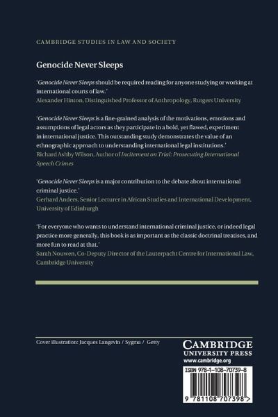 Genocide Never Sleeps provides an ethnographic account of the messy, human process of international criminal justice at the International Criminal Tribunal for Rwanda. It is for readers interested in international criminal justice, human rights, the anthropology of law and contemporary African politics.