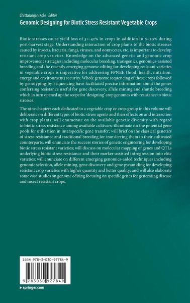 The nine chapters each dedicated to a vegetable crop or crop-group in this volume will deliberate on different types of biotic stress agents and their effects on and interaction with crop plants; will enumerate on the available genetic diversity with regard to biotic stress resistance among available cultivars; illuminate on the potential gene pools for utilization in interspecific gene transfer; will brief on the classical genetics of stress resistance and traditional breeding for transferring them to their cultivated counterparts; will enunciate the success stories of genetic engineering for developing biotic stress resistant varieties; will discuss on molecular mapping of genes and QTLs underlying biotic stress resistance and their marker-assisted introgression into elite varieties; will enunciate on different emerging genomics-aided techniques including genomic selection, allele mining, gene discovery and gene pyramiding for developing resistant crop varieties with higher quantity and better quality; and will also elaborate some casestudies ongenome editing focusing on specific genes for generating disease and insect resistant crops.