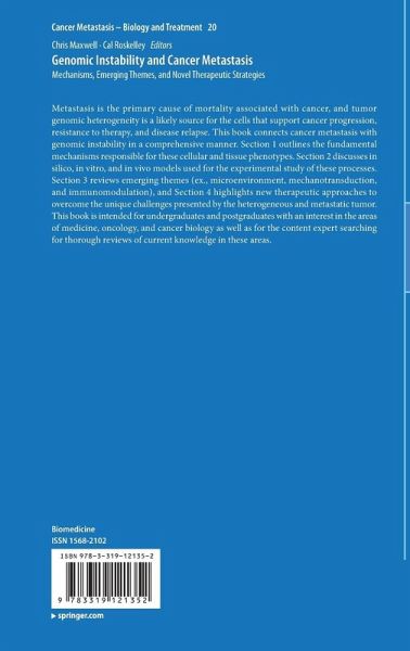 Metastasis is the primary cause of mortality associated with cancer, and tumor genomic heterogeneity is a likely source for the cells that support cancer progression, resistance to therapy, and disease relapse. This book connects cancer metastasis with genomic instability in a comprehensive manner. Section 1 outlines the fundamental mechanisms responsible for these cellular and tissue phenotypes. Section 2 discusses in silico, in vitro, and in vivo models used for the experimental study of these processes. Section 3 reviews emerging themes (ex., microenvironment, mechanotransduction, and immunomodulation), and Section 4 highlights new therapeutic approaches to overcome the unique challenges presented by the heterogeneous and metastatic tumor. This book is intended for undergraduates and postgraduates with an interest in the areas of medicine, oncology, and cancer biology as well as for the content expert searching for thorough reviews of current knowledge in these areas.