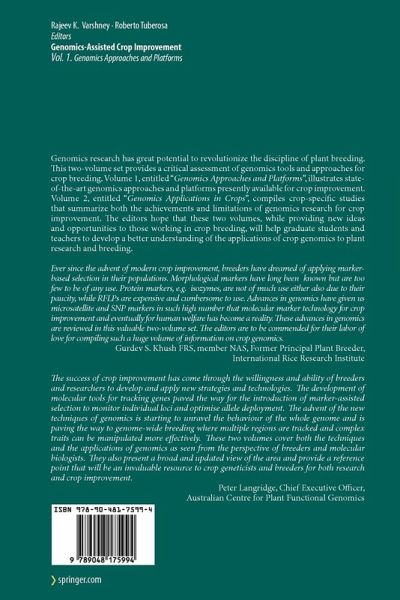 Genomics research has great potential to revolutionize the discipline of plant breeding. This two-volume set provides a critical assessment of genomics tools and approaches for crop breeding. Volume 1, entitled "Genomics Approaches and Platforms", illustrates state-of-the-art genomics approaches and platforms presently available for crop improvement. Volume 2, entitled "Genomics Applications in Crops", compiles crop-specific studies that summarize both the achievements and limitations of genomics research for crop improvement. We hope that these two volumes, while providing new ideas and opportunities to those working in crop breeding, will help graduate students and teachers to develop a better understanding of the applications of crop genomics to plant research and breeding
