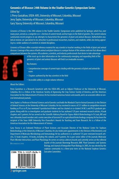 Roles of Plant Hormones in Plant Resistance and Susceptibility to Pathogens.- Canine Genetics Facilitates Understanding of Human Biology.- Xanthomonas oryzae pv. oryzae AvrXA21 Activity Is Dependent on a Type One Secretion System, Is Regulated by a Two-Component Regulatory System that Responds to Cell Population Density, and Is Conserved in Other Xanthomonas spp..- Unraveling the Genetic Mysteries of the Cat: New Discoveries in Feline-Inherited Diseases and Traits.- Variation in Chicken Gene Structure and Expression Associated with Food-Safety Pathogen Resistance: Integrated Approaches to Salmonella Resistance.- Functional Genomics and Bioinformatics of the Phytophthora sojae Soybean Interaction.- Canine SINEs and Their Effects on Phenotypes of the Domestic Dog.- Ovine Disease Resistance: Integrating Comparative and Functional Genomics Approaches in a Genome Information-Poor Species.- Integrating Genomics to Understand the Marek's Disease Virus - Chicken Host-Pathogen Interaction.- Combining Genomic Tools to Dissect Multifactorial Virulence in Pseudomonas aeruginosa.- Genetic Dissection of the Interaction Between the Plant Pathogen Xanthomonas campestris pv. vesicatoria and Its Host Plants.- Structure and Function of RXLR Effectors of Plant Pathogenic Oomycetes.- The Biotrophic Phase of Ustilago maydis: Novel Determinants for Compatibility.- Virulence Evolution in Malaria.- The Ins and Outs of Host Recognition of Magnaporthe oryzae.
