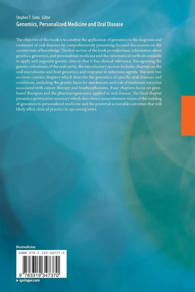 The objective of this book is to catalyze the application of genomics to the diagnosis and treatment of oral diseases by comprehensively presenting focused discussions on the current state of knowledge. The first section book provides basic information about genetics, genomics and personalized medicine and the informatical methods available to apply and organize genetic data so that it has clinical relevance. Recognizing the genetic robustness of the oral cavity, the introductory section includes chapters on the oral micro biome and host genomics and response to infectious agents. The next two sections contain chapters which describe the genomics of specific oral diseases and conditions, including the genetic basis for mechanism and risk of treatment toxicities associated with cancer therapy and bisphosphonates. Four chapters focus on gene-based therapies and the pharmacogenomics applied to oral disease. The final chapter presents a provocative summary which describes a comprehensive vision of the melding of genomics to personalized medicine and the potential actionable outcomes that will likely affect clinical practice in the upcoming years.