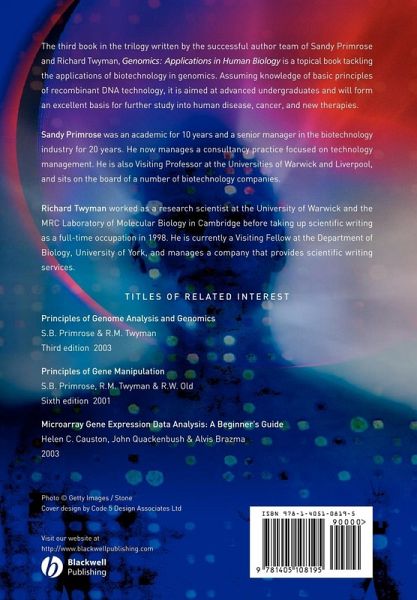 "Genomics is the more specialised...but still manages to cover an impressive array of topics relevant to human biology, including infectious disease, cancer and biopharmaceuticals. Wherever possible, the authors have gone out of their way to link technology and biological application." Paul B. Rainey, Times Higher Education Supplement, March 2004
