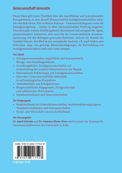 Dieser Band gibt einen Überblick über den begrifflichen und konzeptionellen Bezugsrahmen, in dem aktuell Wissenschaftler Sozialgenossenschaften verorten und diskutieren. Der rechtliche Rahmen - Genossenschaftsgesetz sowie die Sozialgesetzgebung - werden in ihrer rahmensetzenden Wirkung ausgelotet. Praxisbeispiele wirken überblickgebend, illustrierend und anregend für eigene, praxisorientierte Initiativen, aber auch für die wissenschaftliche Auseinandersetzung mit den Beiträgen genossenschaftlicher Akteure im Bereich der Sozialen Dienste. Ein Blick in das europäische Ausland, z.B. nach Italien oder Schweden, zeigt, wie günstige Rahmenbedingungen die Entwicklung von Sozialgenossenschaften stark nach vorne bringen.
