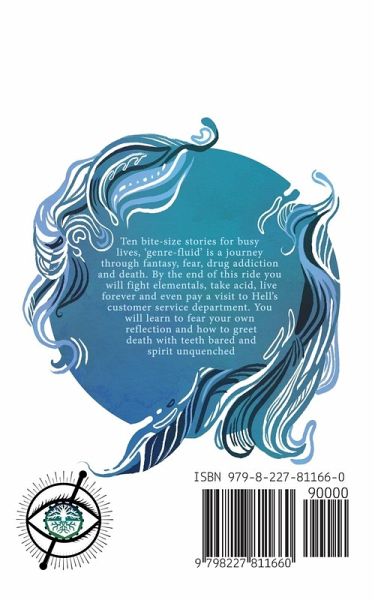Ten bite-size stories for busy lives, 'genre-fluid' is a journey through fantasy, fear, drug addiction and death. By the end of this ride you will fight elementals, take acid, live forever and even pay a visit to Hell's customer service department. You will learn to fear your own reflection, and how to greet death with teeth bared and spirit unquenched.