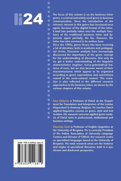 The focus of this volume is on the business letter genre, a seminal and widely used genre in business communication. Since the introduction of the Internet, interest in this genre has increased once again, because of the digital format of the letter. E-mail has partially taken over the multiple functions of the traditional business letter and bypassed, again partially, the fax. However, the letter has also survived in its written form.