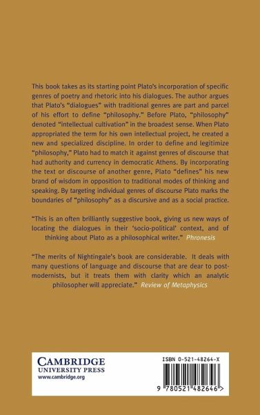 This book takes as its starting point Plato's incorporation of specific genres of poetry and rhetoric into his dialogues.