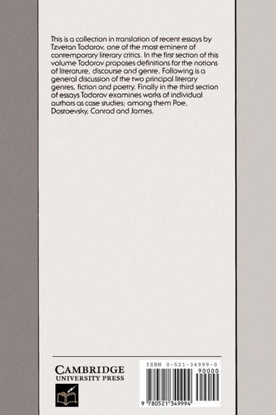This is a collection in translation of recent essays by Tzvelan Todorov, one of the most eminent of today's literary critics. Todorov proposes definitions for the notions of literature, discourse and genre, discusses the two principal literary genres, fiction and poetry, and examines individual authors as case studies.