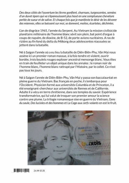 Des deux côtés de l'ouverture les lèvres gonflent, charnues, turgescentes, semées d'un duvet épars qui va s'épanouissant plus haut en une somptueuse chevelure perlée de sueur et de salive. Et chaque fois que je manifeste le désir de les dévorer des miennes, elles se baissent sur moi, se donnent, moites, écarlates, déchirées.L'an de disgrâce 1965, l'année du Serpent. Au Vietnam la mission civilisicide planétaire millénaire de l'homme blanc sévit son plein, bat point d'orgue à coups de napalm, de dioxine, de B-52, de porte-avions nucléaires. A ras de rizière au fin fond du delta du Mékong deux adolescentes niacouées se jettent dans la bataille.Né à Saigon l'année où a eu lieu la bataille de Diên-Biên-Phu, Vân Mai nous assène ici un premier roman massue, à la fois tendre et violent, ouvrir bordée, trois boulets rouges exploser ancestral mensonge blanc. Vous êtes en train de feuilleter un objet unique dans les annales : le roman noir de l'homme blanc, l'homme blanc rattrapé par l'Histoire, par le collet. Ce n'est pas tous les jours.