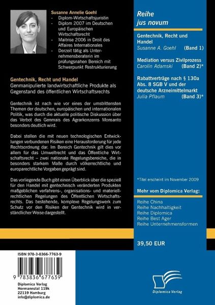 Das vorliegende Buch gibt einen Überblick über die speziell für den Handel mit gentechnisch veränderten Produkten maßgeblichen verfahrens-, organisations- und materiell-rechtlichen Regelungen des Öffentlichen Wirtschaftsrechts. Das bestehende, komplexe Regelungswerk zum Schutz vor den Risiken der Gentechnik wird in verständlicher Weise dargestellt.
