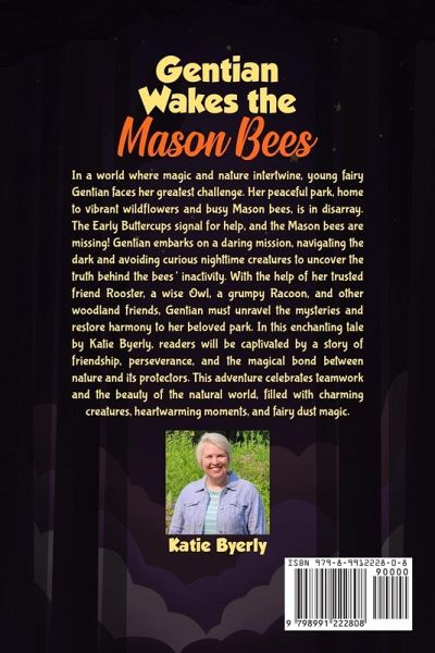In a world where magic and nature intertwine, young fairy Gentian faces her greatest challenge. Her peaceful park, home to vibrant wildflowers and busy Mason bees, is in disarray. The Early Buttercups signal for help, and the Mason bees are missing! Gentian embarks on a daring mission, navigating the dark and avoiding curious nighttime creatures to uncover the truth behind the bees' inactivity. With the help of her trusted friend Rooster, a wise Owl, a grumpy Racoon, and other woodland friends, Gentian must unravel the mysteries and restore harmony to her beloved park. In this enchanting tale by Katie Byerly, readers will be captivated by a story of friendship, perseverance, and the magical bond between nature and its protectors. This adventure celebrates teamwork and the beauty of the natural world, filled with charming creatures, heartwarming moments, and fairy dust magic.
