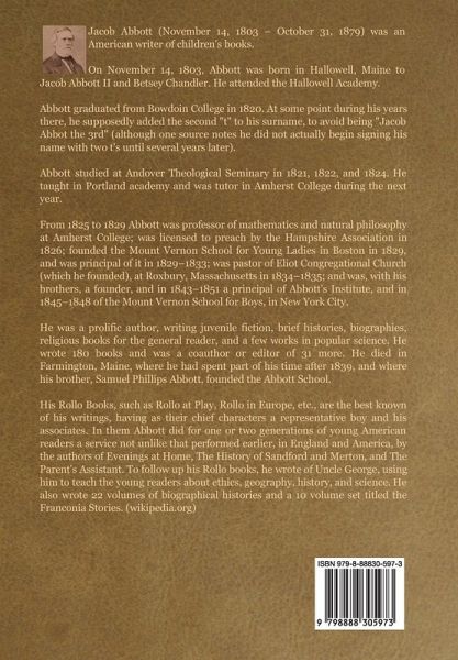 CONTENTS Three Modes of Management What Are Gentle Measures? There Must Be Authority Gentle Punishment of Disobedience The Philosophy of Punishment Rewarding Obedience The Art of Training Methods Exemplified Della and the Dolls Sympathy: -I. The Child with the Parent Sympathy: -Ii. The Parent with the Child Commendation and Encouragement Faults of Immaturity The Activity of Children The Imagination in Children Truth and Falsehood Judgment and Reasoning Wishes and Requests Children's Questions The Use of Money Corporal Punishment Gratitude in Children Religious Training Conclusion About the author: Jacob Abbott (November 14, 1803 - October 31, 1879) was an American writer of children's books. On November 14, 1803, Abbott was born in Hallowell, Maine to Jacob Abbott II and Betsey Chandler. He attended the Hallowell Academy. Abbott graduated from Bowdoin College in 1820. At some point during his years there, he supposedly added the second "t" to his surname, to avoid being "Jacob Abbot the 3rd" (although one source notes he did not actually begin signing his name with two t's until several years later). Abbott studied at Andover Theological Seminary in 1821, 1822, and 1824. He taught in Portland academy and was tutor in Amherst College during the next year. From 1825 to 1829 Abbott was professor of mathematics and natural philosophy at Amherst College; was licensed to preach by the Hampshire Association in 1826; founded the Mount Vernon School for Young Ladies in Boston in 1829, and was principal of it in 1829-1833; was pastor of Eliot Congregational Church (which he founded), at Roxbury, Massachusetts in 1834-1835; and was, with his brothers, a founder, and in 1843-1851 a principal of Abbott's Institute, and in 1845-1848 of the Mount Vernon School for Boys, in New York City. He was a prolific author, writing juvenile fiction, brief histories, biographies, religious books for the general reader, and a few works in popular science. He wrote 180 books and was a coauthor or editor of 31 more. He died in Farmington, Maine, where he had spent part of his time after 1839, and where his brother, Samuel Phillips Abbott, founded the Abbott School. His Rollo Books, such as Rollo at Play, Rollo in Europe, etc., are the best known of his writings, having as their chief characters a representative boy and his associates. In them Abbott did for one or two generations of young American readers a service not unlike that performed earlier, in England and America, by the authors of Evenings at Home, The History of Sandford and Merton, and The Parent's Assistant. To follow up his Rollo books, he wrote of Uncle George, using him to teach the young readers about ethics, geography, history, and science. He also wrote 22 volumes of biographical histories and a 10 volume set titled the Franconia Stories. (wikipedia.org)