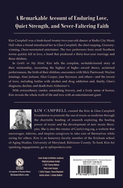 The page-turning, never-before-told story of Kim Campbell's rollercoaster thirty-four-year marriage to music legend Glen Campbell, including how Kim helped Glen finally conquer his addictions only to face their greatest challenge when he was diagnosed with Alzheimer's disease.