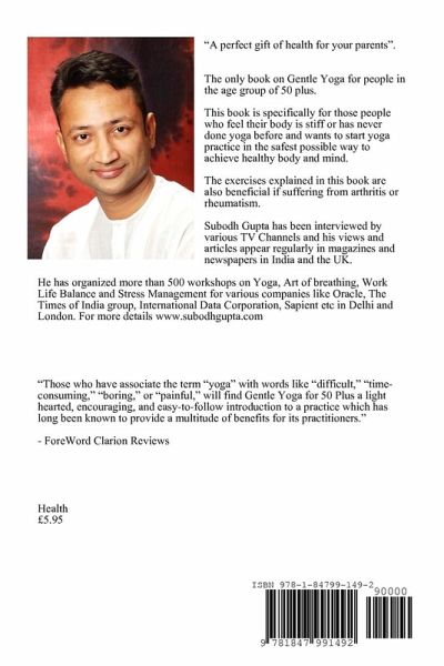 The only book on Gentle Yoga for people in the age group of 50 plus. This book is specifically for those people who feel their body is stiff or has never done yoga before and wants to start yoga practice in the safest possible way to achieve healthy body and mind. The exercises explained in this book are also beneficial if suffering from arthritis or rheumatism.