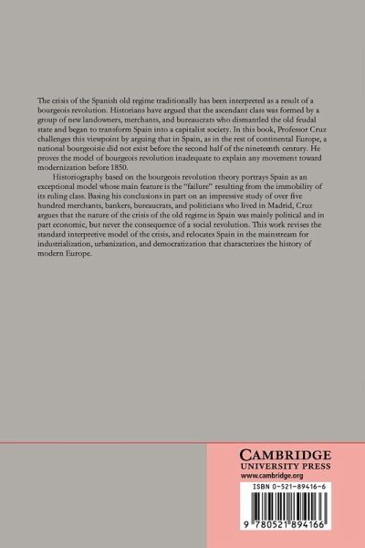The traditional interpretation of the crisis of the Spanish Old Regime is to see it as a revolution carried out by an ascendant bourgeoisie. Professor Cruz challenges this viewpoint by arguing that in Spain, as in the rest of continental Europe, a national bourgeoisie did not exist before the second half of the nineteenth century. Consequently, the model of bourgeois revolution proves inadequate to explain any movement toward modernisation before 1850. Historiography based on the bourgeois revolution theory portrays Spain as an exceptional model whose main feature is the 'failure' produced by the immobility of its ruling class. This work re-examines that understanding, and relocates Spain in the mainstream for industrialisation, urbanisation and democratisation that characterise the history of modern Europe.
