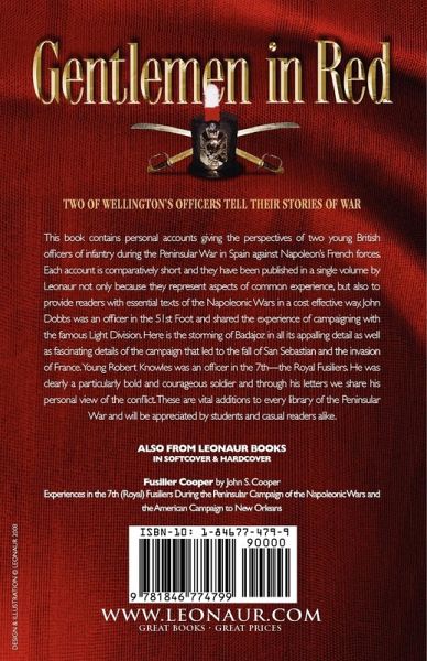 Two of Wellington's officers tell their stories of war This book contains personal accounts giving the perspectives of two young British officers of infantry during the Peninsular War in Spain against Napoleon's French forces. Each account is comparatively short and they have been published in a single volume by Leonaur not only because they represent aspects of common experience, but also to provide readers with essential texts of the Napoleonic Wars in a cost effective way. John Dobbs was an officer in the 51st Foot and shared the experience of campaigning with the famous Light Division. Here is the storming of Badajoz in all its appalling detail as well as fascinating details of the campaign that led to the fall of San Sebastian and the invasion of France. Young Robert Knowles was an officer in the 7th-the Royal Fusiliers. He was clearly a particularly bold and courageous soldier and through his letters we share his personal view of the conflict. These are vital additions to every library of the Peninsular War and will be appreciated by students and casual readers alike.