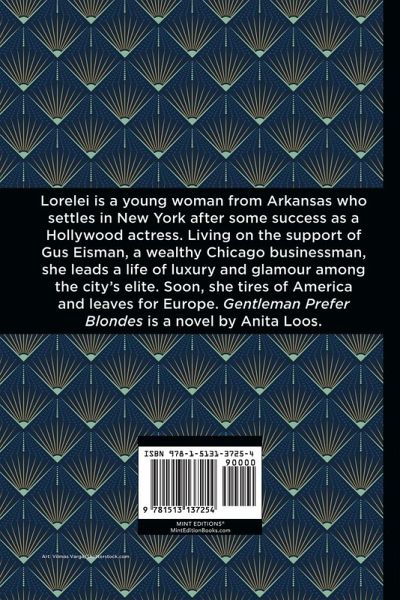 Lorelei is a young woman from Arkansas who settles in New York after some success as a Hollywood actress. Living on the support of Gus Eisman, a wealthy Chicago businessman, she leads a life of luxury and glamor among the city's elite. Soon, she tires of America and leaves for Europe. Gentleman Prefer Blondes is a novel by Anita Loos.