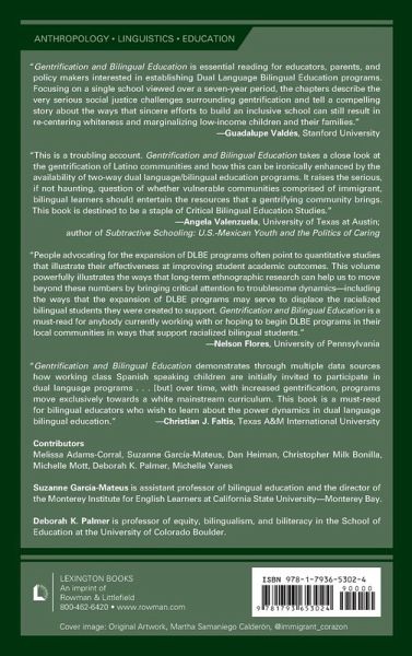 Chapter 1 Hillside Elementary, Our Research Collaborative, Gentrification, and TWBE in Texas Chapter 2 Espacios de confianza: Affectively and Systemically Resisting Color-blind Ideologies in TWBE Home-school Planning Chapter 3 "The Dual Language Program Changes Everything": The First Year of TWBE at Hillside and the (Re)negotiation of a School's Identity Chapter 4 "I feel it's not about ability, it's about power." Bilingual Teachers' Interpretation of a Gentrifying Two-way Immersion Program Chapter 5 "Tenemos que seguir nuestra cultura": Whiteness as Property at Hillside Elementary and Sam Houston Middle Schools Chapter 6 Spaces of Resistance, Hope, and Justice: Centering the Foundational Goal of Critical Consciousness at Hillside Chapter 7 From Tamales and Mole to Pizza and Pasta: Where Went the Neighborhood, So Goes the School Chapter 8 ¡Adelante!