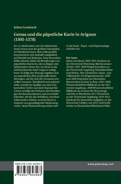 Im 14. Jahrhundert war die italienische Stadt Genua eine der größten Seemächte im Mittelmeerraum. Ihre Außenpolitik konzentrierte sich deshalb maßgeblich auf Handel und Kolonien. Eine besondere Rolle nahmen dabei die Beziehungen zur päpstlichen Kurie ein, die zu Beginn des Jahrhunderts ihren Sitz von Rom in die südfranzösische Stadt Avignon verlegt hatte. In Folge des Umzugs ergaben sich am päpstlichen Hof strukturelle Veränderungen, auf die sich die Genuesen einstellen mussten. Detailreich und anhand vieler unedierter Quellen aus dem Vatikanischen Archiv und dem Staatsarchiv Genua verfolgt der Verfasser die Wandlungen der Kommunikation und entwickelt Faktoren, die für das Verhältnis zwischen italienischen Städten und der Kurie in Avignon von grundlegender Bedeutung waren. Seine Untersuchung ordnet sich in die Stadt-, Papst- und Diplomatiegeschichte ein.