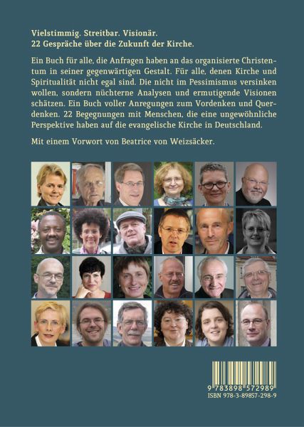 Ein Buch für alle, die Anfragen haben an das organisierte Christentum in seiner gegenwärtigen Gestalt. Für alle, denen Kirche und Spiritualität nicht egal sind. Die nicht im Pessimismus versinken wollen, sondern nüchterne Analysen und ermutigende Visionen schätzen. Ein Buch voller Anregungen zum Vordenken und Querdenken. 22 Begegnungen mit Menschen, die eine ungewöhnliche Perspektive haben auf die evangelische Kirche in Deutschland.