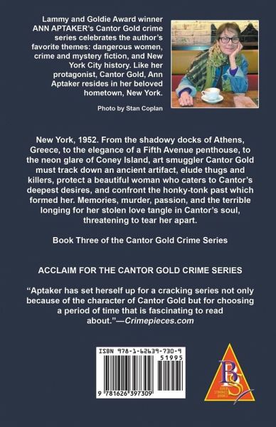 New York, 1952. From the shadowy docks of Athens, Greece, to the elegance of a Fifth Avenue penthouse, to the neon glare of Coney Island, art smuggler Cantor Gold must track down an ancient artifact, elude thugs and killers, protect a beautiful woman who caters to Cantor's deepest desires, and confront the honky-tonk past which formed her. Memories, murder, passion, and the terrible longing for her stolen love tangle in Cantor's soul, threatening to tear her apart. Book Three of the Cantor Gold Crime Series