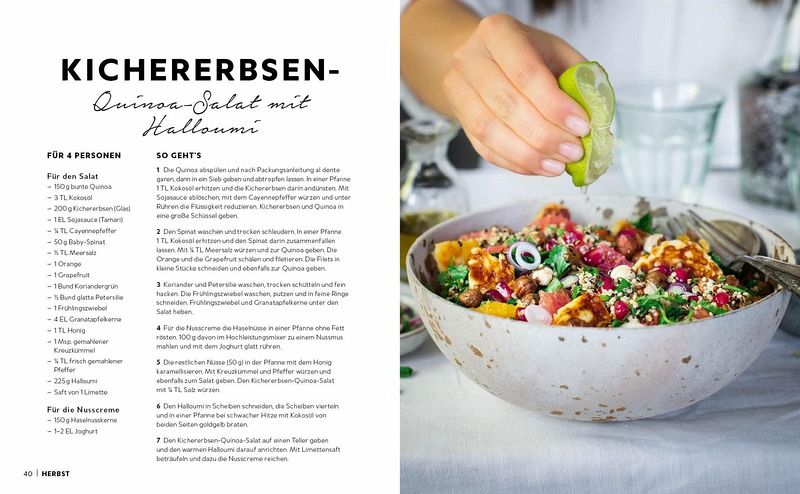 Die Zeiten, in denen du dir Salat als eine Schüssel welkes Grünzeug vorgestellt hast, sind von nun an vorbei. Stattdessen landet ein Kürbis-Linsen-Salat mit Radicchio, der Greek Style Coleslaw oder ein leichter Frühlingssalat mit Halloumi und Beeren auf deinem Teller. Das macht nicht nur satt und glücklich, sondern auch das Leben leichter - denn Salate eignen sich hervorragend als Meal-Prep, gesunde Zwischenmahlzeit oder schnelle Feierabendküche. Probier es selbst aus und lass es dir schmecken!