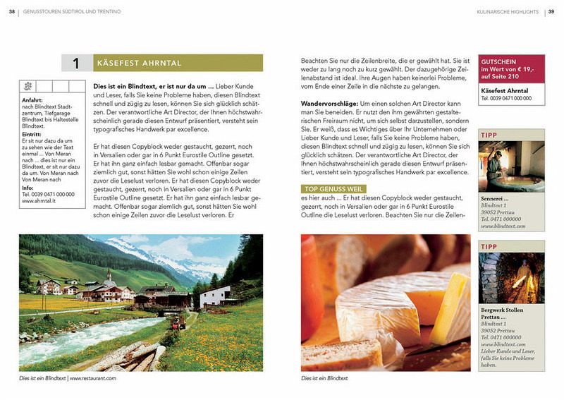 Der Top 10 Reiseführer Genusstouren in Südtirol und Trentino ist ein ganz spezieller Führer, der Wanderungen und Touren für jedermann mit kulinarischen Highlights verbindet. Es werden Touren und kulinarische Events in Südtirol und im Trentino vorgestellt.