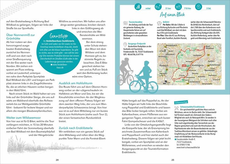 Detailliert recherchierte E-Bike-Touren für Deutschlands größtes MittelgebirgeErgänzt um Tipps zur klassisch badischen oder württembergischen EinkehrPlus: Badens beste Fischräucherer, Käseproduzenten, Winzer und Edeldestillen